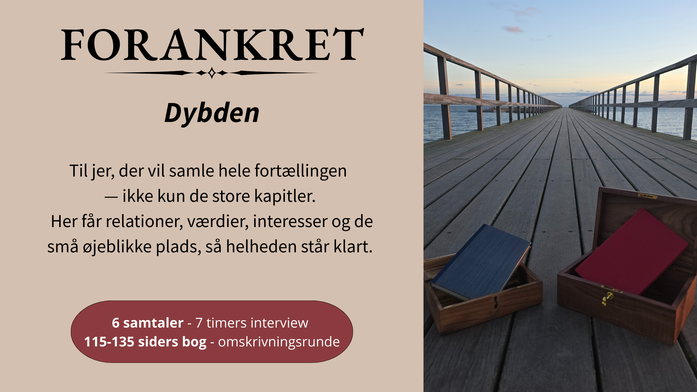 Vi taler i fortrolighed om det menneske, I har mistet, og om hvordan en mindebog og mindeæske kan bevare livshistorien – og skabe et trygt rum for sorgen.