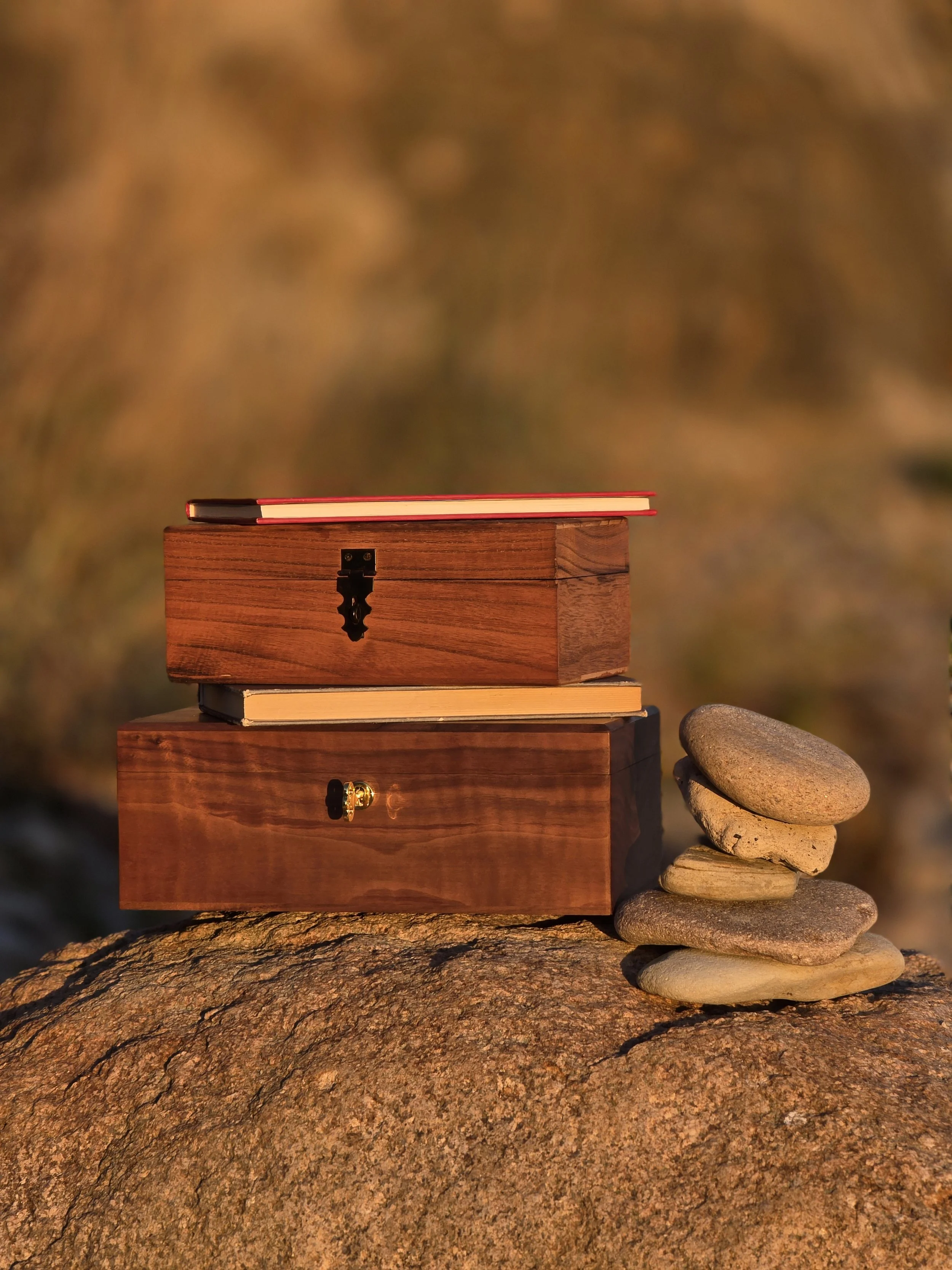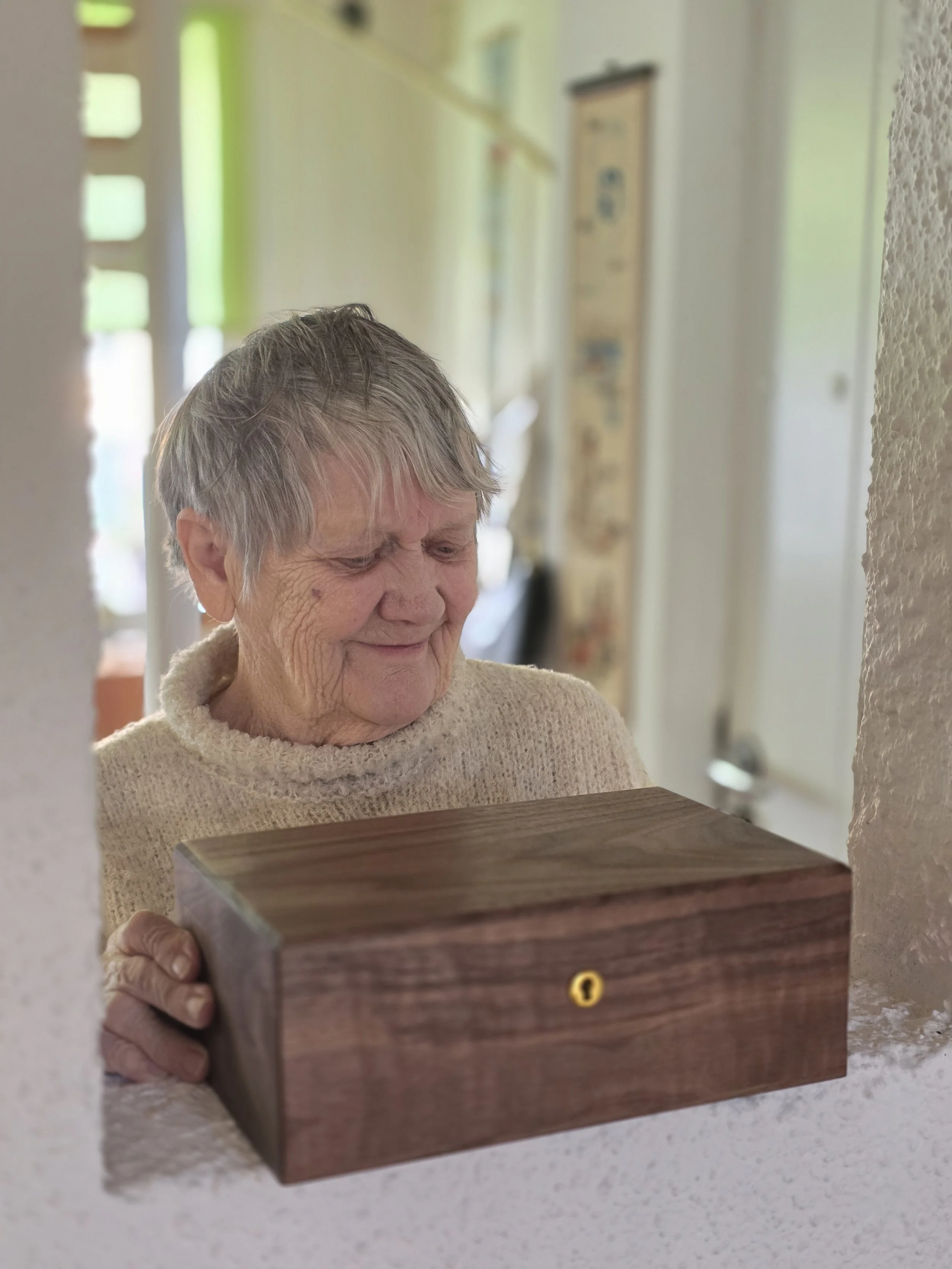 Vi former den til en portrætbog – og samler bogen og udvalgte små spor i en mindeæske i træ, så børn og børnebørn kan åbne den igen og igen.